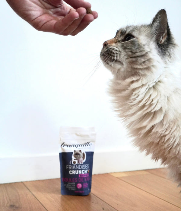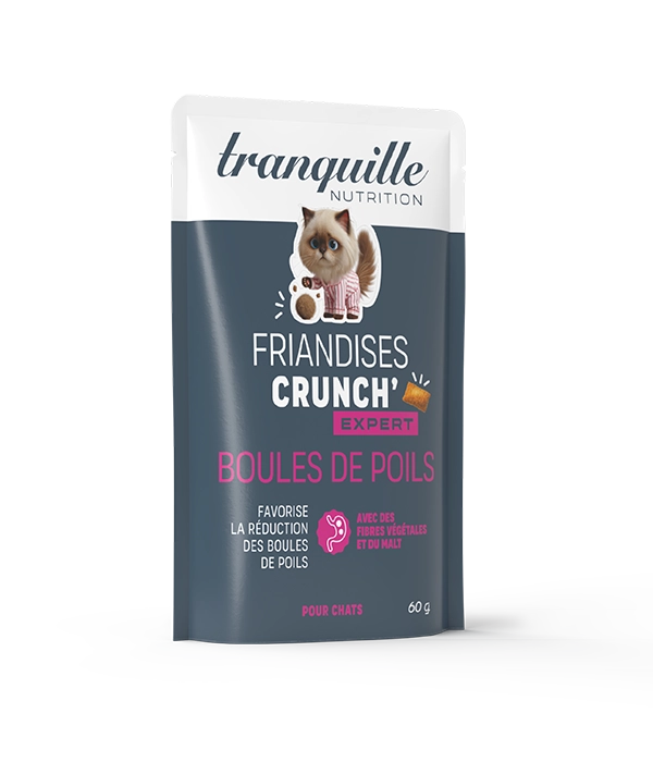 Les fibres végétales et le malt contenus dans nos friandises Crunch'Expert anti-boules de poils agissent en symbiose pour aider à l'élimination des boules de poils. Le malt, riche en enzymes, aide à dissoudre les boules de poils formées dans l'estomac et les fibres végétales stimulent le transit intestinal, facilitant ainsi leur élimination naturelle. Cette formule simple et efficace constitue une solution préventive et gourmande pour le bien-être quotidien de votre compagnon à quatre pattes !